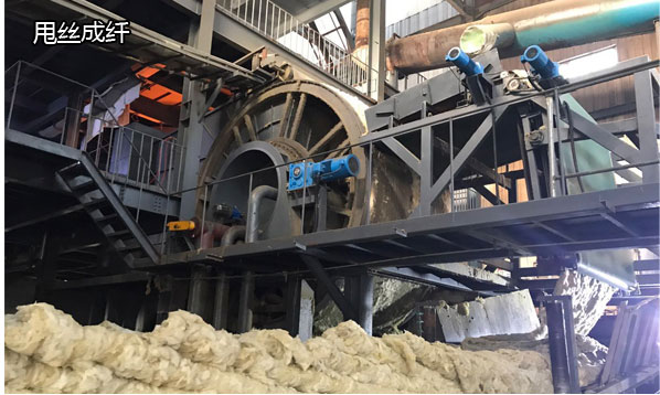 采用國(guó)際先進(jìn)的四輥離線機(jī)甩絲形成巖棉纖維,高速鼓風(fēng)機(jī)使其噴吹冷卻成型,在噴吹過(guò)程中添加一定比例的高效粘合劑,均勻布棉由大型擺錘設(shè)備,使其巖棉膠棉呈三維布棉狀態(tài),平均分布與履帶上。