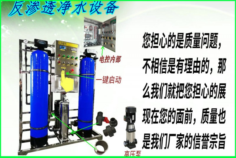 我們的凈水設(shè)備不管是質(zhì)量?jī)r(jià)格都會(huì)讓您滿意的,設(shè)備出廠后不會(huì)有售后,因?yàn)槲覀兂鰪S前已經(jīng)把質(zhì)量做到?jīng)]有售后,我們的設(shè)備全是自動(dòng)控制,水滿自停,缺水就會(huì)自動(dòng)產(chǎn)水,無(wú)需人工管理,管件部分高壓是不銹鋼,低壓部分是工業(yè)UPVC管件,不會(huì)出現(xiàn)斷裂崩斷等現(xiàn)象。電控全是德力西品牌,低壓保護(hù)開(kāi)關(guān),熱載保護(hù),高低壓沖洗等功能,只要設(shè)備出廠我們將會(huì)終生維護(hù),只要您信任我們,我們將不會(huì)辜負(fù)您。