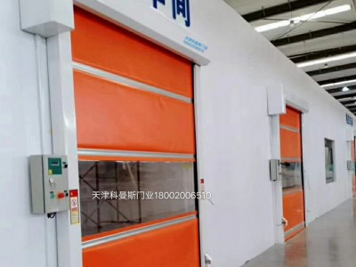 科曼斯快速門又稱為快速卷門、高速門、高速卷門,是通過PLC、變頻器、編碼器控制(PVC材質(zhì))門簾快速升降,并準(zhǔn)確定位的一種工業(yè)門,多用于食品、電子、印刷等對環(huán)境要求較高的場所,主要作用是起快速隔離的作用從而保證車間空氣質(zhì)量無塵等級。