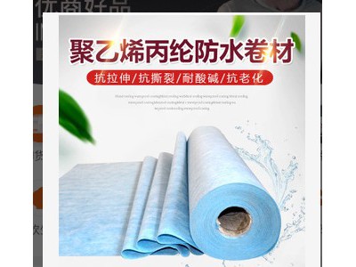 高分子聚乙烯丙(滌)綸防水卷材是采用聚乙烯、高強丙(滌)綸無紡布、紫外線隔光劑、抗老化劑等高分子原料,由自動化生產線一次性擠出成型加工制成。卷材中間層是防水層和防老化層,上下兩面是增強粘結層,牢固、可靠、無翹邊、無空鼓、雙層防水,是一種新型的防水材料。