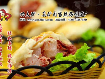 后來(lái)小德張去世將店面交給他的得力伙計(jì)張實(shí)誠(chéng)經(jīng)營(yíng),張實(shí)誠(chéng)老后又將店傳給徒弟張子華,張子華聰敏好學(xué),人品一流,當(dāng)時(shí)在尊祖莊一帶流傳著一個(gè)誠(chéng)信的故事:張家的油不稱(chēng)李家的錢(qián)不數(shù)。這是西城固莊一個(gè)李姓人家經(jīng)常來(lái)張子華的店里買(mǎi)驢油,每次都是提前把油裝好,李家來(lái)拿油放下錢(qián)就走,張子華也不數(shù)是多少錢(qián)就放進(jìn)錢(qián)箱,張家的油從來(lái)不會(huì)缺斤短兩,李家也從來(lái)不會(huì)少給錢(qián),長(zhǎng)期以來(lái)形成信任,后來(lái)張家李家還做了親家。除了誠(chéng)信經(jīng)營(yíng)張子華在制作工藝上也摸索出了很多前人沒(méi)有嘗試過(guò)的方法。以前沒(méi)有冰箱,加工出來(lái)的驢肉無(wú)法長(zhǎng)期保存,夏天賣(mài)不掉一天就壞了,只能扔掉,這樣無(wú)形中就增加了很大的成本。張子華在地里采來(lái)野麻(野麻是北方很常見(jiàn)的一種草本植物,麻繩提豆腐中的麻繩就是用野麻的皮做的)的葉子把加工好涼透的驢肉包好,外面用麻繩系住,然后放到七八米深的地窖里,這樣就可以保存七八天不會(huì)變質(zhì),沒(méi)想到這種包裝還有一種神奇的效果,經(jīng)過(guò)野麻葉子包裹幾天的驢肉味道更加鮮美清香,成功的解決了儲(chǔ)存問(wèn)題開(kāi)店就輕松多了。1937年日本鬼子入侵,尊祖莊一帶尤為嚴(yán)重,建了好多炮樓,鬼子們吃過(guò)驢肉火燒也愛(ài)上了這一口,后來(lái)地下黨漸漸打出了名聲,鬼子兵平常不敢出炮樓,就讓張子華給送到炮樓里面去,張子華天生膽小,打雷天都不敢去關(guān)窗戶(hù),哪里敢去鬼子的炮樓,和地下黨接觸后,在他們的鼓勵(lì)下才為了民族大義開(kāi)始頻繁的進(jìn)出鬼子的活動(dòng)地送驢肉火燒,給地下黨傳遞出很多有價(jià)值的情報(bào)。解放后張子華五個(gè)兒子都相繼有了不錯(cuò)的工作,這個(gè)驢肉火燒店一直找不到合適的接班人。直到2006年3月,張子華之孫張海濤先生接手經(jīng)營(yíng)驢肉火燒店,張海濤以老店祖?zhèn)骷夹g(shù)為基礎(chǔ),結(jié)合現(xiàn)在科學(xué)飲食制作經(jīng)驗(yàn),獨(dú)創(chuàng)十九種特殊制作工藝,從驢的宰殺、驢肉的處理、驢肉的煮制、面粉的選用、和面的技巧,火燒的檊制、香燜的制作、湯汁的調(diào)制無(wú)不精益求精。為達(dá)到更科學(xué)的管理和發(fā)展,2008年張海濤成立了河北瀛韻留香管理有限公司。并注冊(cè)了一個(gè)時(shí)尚的品牌“功夫驢”以打入各大中城市市場(chǎng),幾百年的發(fā)展完善,從只為果腹的廉價(jià)“大火燒加驢肉”一直發(fā)展到如今擁有工業(yè)化流程,標(biāo)準(zhǔn)化操作的現(xiàn)代化股份公司。功夫驢視質(zhì)量如生命,從驢源的選擇、火燒加工、出品的時(shí)間,都設(shè)置了規(guī)范流程,確保了品質(zhì)的安全和統(tǒng)一。功夫驢卡通造型活潑、可愛(ài),擺出中國(guó)功夫Pose的小驢,既彰顯出中國(guó)傳統(tǒng)文化又寓意功夫驢驢肉制作的精細(xì)繁雜和功夫驢驢肉的非凡功效。背景的折扇,體現(xiàn)了文化、傳統(tǒng)和高貴。剛勁瀟灑的毛筆字加上印章更將中國(guó)的傳統(tǒng)精髓體現(xiàn)的淋漓盡致。“做地道中國(guó)味道”是功夫驢得以生存發(fā)展的根本,在制作過(guò)程中一個(gè)人要熟練的把十六七斤活好的面粉搟片、抹油、抻長(zhǎng)、卷?xiàng)l、揪劑、兩面包皮,烙制、烘烤、出鍋、加肉,一次做出一百多個(gè)火燒,可謂一絕。